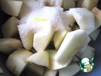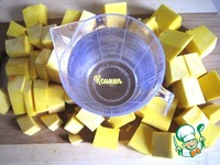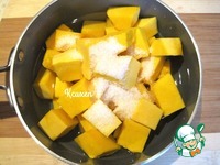 Для тыквенного пюре: тыкву нарежем произвольными кусочками. Выложим в сотейник, добавив воду и сахар. Доведём до кипения, закроем крышкой и будем тушить 20 минут или до мягкости тыквы. |