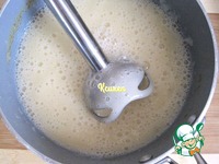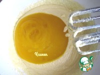 В яично-маслянную массу добавим смесь фруктовых пюре и смешаем миксером на низкой скорости до однородности. |
