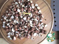 Замесим кексовое тесто, соединив жидкую и сухую смеси. В последнюю очередь вмешаем в тесто нарубленный фундук. |