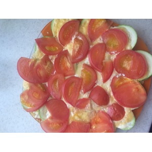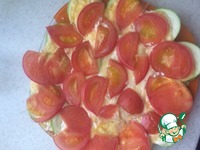 И помидорки режем кружочками, если помидор большой, то можно ещё кружочек пополам. И сверху на каждый кусочек. |