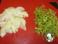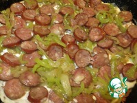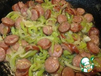 Пока жарятся овощи, нарежем колбаски колечками... |