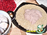 Сделала дополнительно ещё крем. Но немного изменила. Сливки взбила, так как у меня малина, добавила сгущёнку со вкусом малины и желатин. |