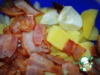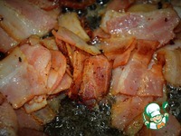 Бекон режем (у меня полосочками) на 4 части каждую. |
