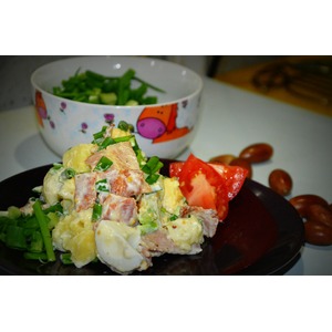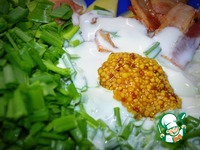 Добавляем мелко нарезанный зеленый лук и заправляем йогуртом и горчицей ( я забыла купить обычную горчицу, поэтому добавила зернистой) |