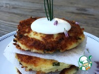 Смешайте все ингредиенты кроме муки. Сформируйте из этой массы лепешки и обваляйте в муке. Обжарьте с двух сторон на масле до хрустящей, золотистой корочки. |