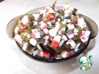 Описание: Вкусный, быстрый и очень легкий в приготовлении салат. Для любителей морской капусты.