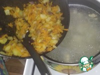 Ломаем вермишель на 3-4 части и отправляем в супчик. |