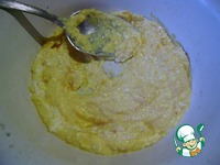 Смешиваем яйцо, размягченное сливочное масло, мед и тыквенное пюре с творогом. |