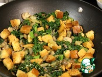 Добавляем к овощам поджаренный хлеб и яйца и перемешиваем. |