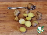 Мелкий картофель отварить в мундире. Картофель должен быть не крупнее перепелиного яйца. Нарезать на половинки |
