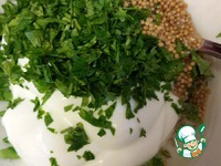 Для заправки смешать крем-фреш, мелконарезанную петрушку, зерновую горчицу и оливковое масло |