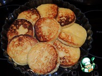 При помощи кулинарного кольца выложить на сковороду с разогретым топленым маслом сырники и обжарить их с обеих сторон до румяности. Выложить в круглую форму для запекания. |