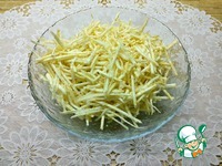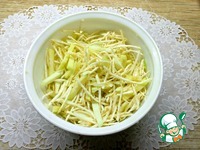 Яблоки помыть, очистить, нарезать соломкой. Смешать яблоки с натертым сельдереем, полить лимонным соком и перемешать. |