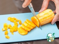 Очищенный кусочек тыквы запечь в микроволновке или духовке до мягкости. Я запекала в СВЧ 10 минут. Нарезать кубиками |