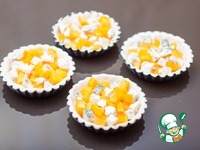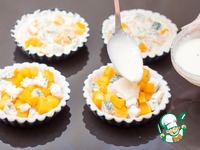 Положить в формочки с тестом кусочки тыквы и голубого сыра |