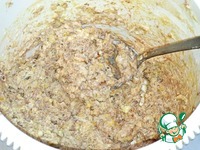 Взбила белок с сахарной пудрой. Насыпала муку, хлопья, разрыхлитель, корицу, соль. Добавила размягчённое масло и сметану. Хорошо перемешала. Получилось густое и немного липкое тесто. |