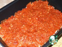 Форму смажьте растительным маслом и слоями выложите сначала баклажаны. |