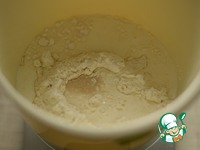 2. Развести дрожжи в воде. Соединить все жидкие ингредиенты. Вместо апельсиновой воды я обычную воду проварила с цедрой апельсина. |