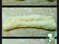 После двух суток "отдыха" в холодильнике, тесто выкладываем на присыпанный мукой стол и оставляем отдохнуть минут 10. |