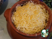 Достать горшочек из духовки, посыпать сверху тертым сыром и вернуть обратно ещё на 20 мин. |