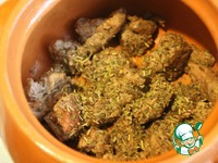 Описание: Говядина в горшочке с овощами и луковым соусом "субиз" и карамелизованным луком. Бёф ан доб, блюдо Прованса - говядина, которая готовится в глиняном или чугунном горшочке (фр. «daubiere» - котелок для тушения мяса).