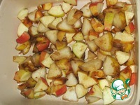 Фрукты вымыть, очистить от семян, порезать кусочками и уложить в форму. При желании присыпать корицей для аромата. |