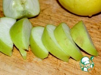 Яблоки хорошо вымыть, удалить сердцевину и разрезать на четыре части. Затем нарезать продольными ломтиками толщиной 1 см. |