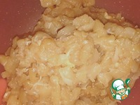 Основное время уходит на мелкую рубку куриных грудок. У меня нет блендера, поэтому с помощью ножа нарезаем мелко филе. |