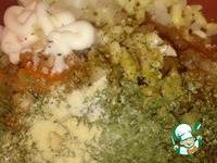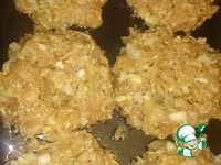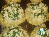 Ставим отвариваться рис (можно сварить заранее). Противень смазываем маслом (не обильно). Формируем "гнездышки" с ямкой внутри для риса. Отправляем в духовку на 25 минут. Температурный режим 180. |