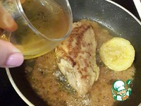 Поместить куриное филе в маринад на 1 час. Хвостик от лимона можно кинуть туда же и потом использовать его при готовке - он дополнительно отдаст свой аромат |