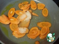 А тем временем на другой сковороде разогреть сливочное масло, добавить нарезанную морковь и сахар, слегка обжарить около 5 минут |