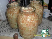 После того как капуста "покупалась" в рассоле, её нужно вытащить, немного отжимая в таз. Добавить морковь и перемешать. Плотно уложить в банки. |
