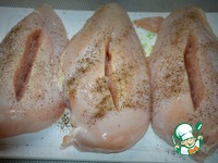 Куриные грудки солим-перчим и делаем углубление |