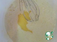 Растопить сливочное масло и добавить его в яичную смесь, влить молоко. |