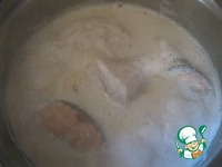 В кипящее молоко опустить рыбу и варить 10 мин. Рыбу вынуть, молоко не выливать. Разобрать рыбу на небольшие кусочки. Если есть кости, удалить. |