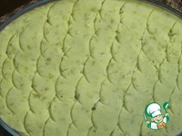 Выложить содержимое сковороды в форму. Сверху выложить пюре. |