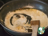Свинину убрать со сковороды. В сковрорде останутся соки от жарки мяса и немного вина. Залить туда сливки, посолить, поперчить и добавить горчицу. Перемешать. |