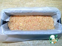 Форму для запекания для удобства застилаем пергаментом, смазываем 1 ч. л. растительного масла. Выкладываем половину фарша, разравниваем ложкой. |