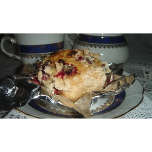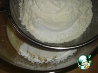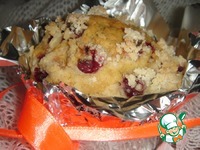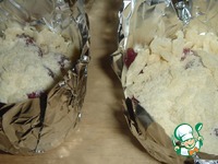 Сверху присыпала посыпкой из муки, сахара, ванилина и масла. |