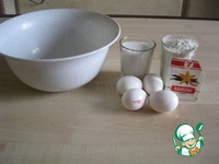Берем яйца, сахар, муку и ванилин. |