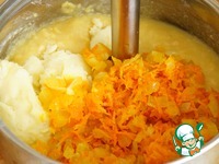 Добавить к нему картофельное пюре, обжаренные овощи, еще раз пюрировать все вместе. |