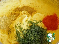 Добавить специи, соль, мелко рубленый укроп, перемешать как следует. |