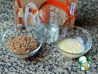 Гречневые хлопья залить кипятком, добавить растопленное сливочное масло, оставить настояться до разбухания 10 минут. |