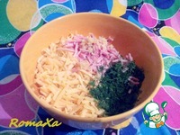 Добавляем тёртый чеснок, рубленный укроп и перемешиваем |