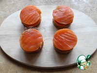 Собираем канапе с рыбой: На хлебцы выложить семгу, вырезанную тем же диаметром; |