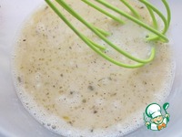 Взбить яйца со сливками. Добавить крахмал и специи. Аккуратно с солью! |