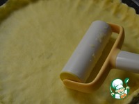 Тесто разделить на 2 части. Большую раскатать и выложить на дно формы, формируя высокие бортики. Поставить форму в холодильник. Меньшую часть теста тоже оставить в холодильнике. |