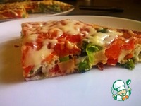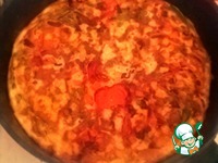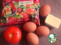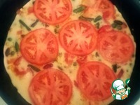 Залить овощи яичной смесью и выложить сверху ломтики помидора. Накрыть крышкой. |