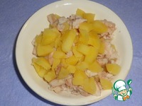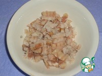 Рыбное филе отварить, остудить и порезать небольшими кусочками. |