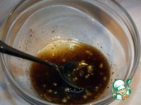 Смешайте для заправки соевый соус, сахар, натертый свежий имбирь, черный перец, рисовый уксус и масло. |
